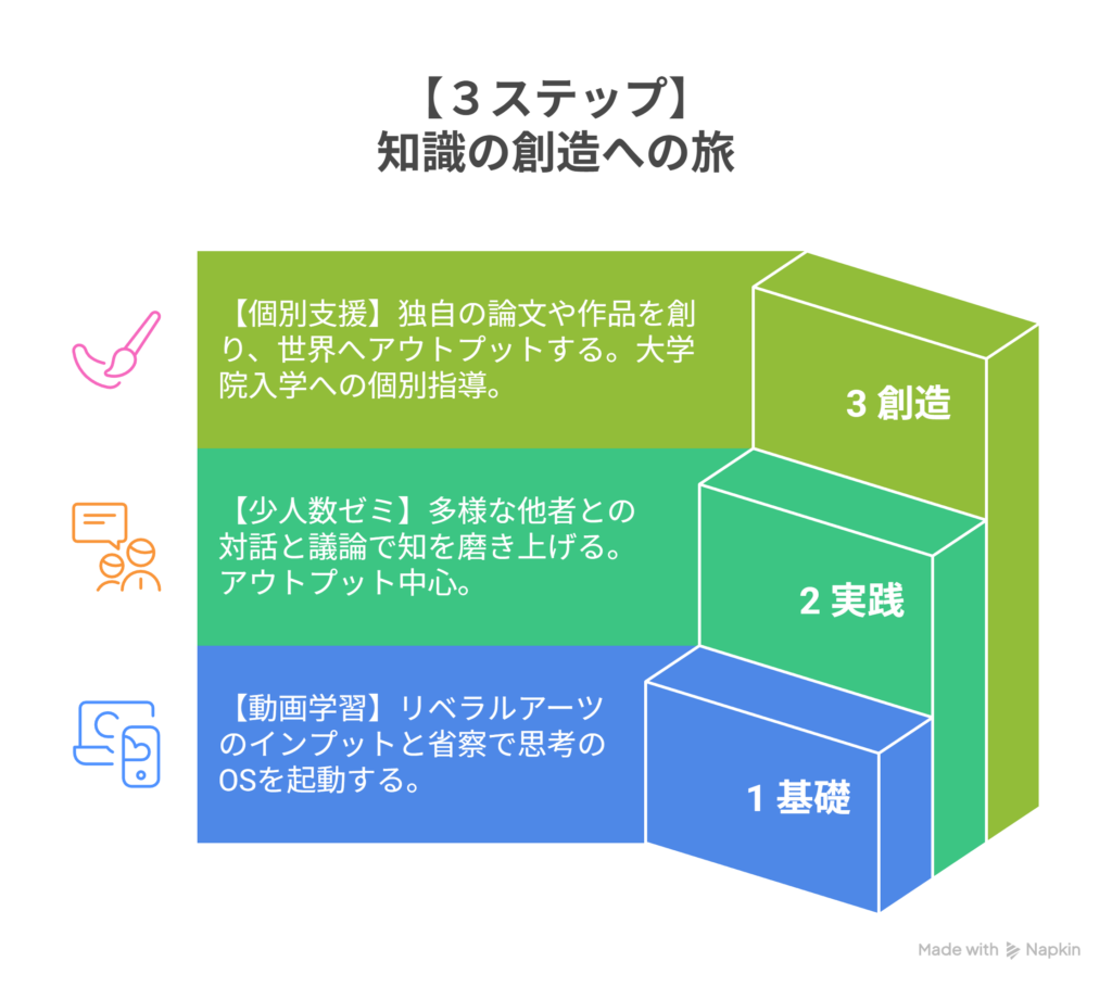 リベラーツのカリキュラムは、経験則だけではありません。「大人が学ぶ」ための科学的な理論に基づき、緻密に設計されています。